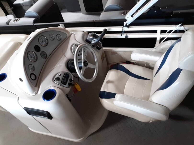 - Features: Comfortable seating, durable construction, ample storage, bimini top, fishing-friendly layout, optional stereo system.