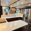 - Spacious flybridge with a second helm station, ample seating, and a commanding view for navigation.